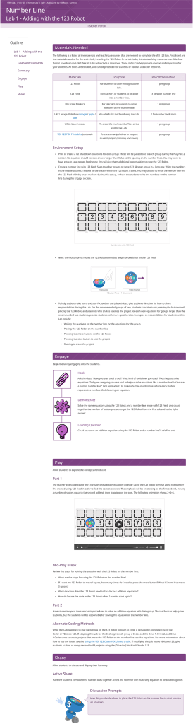 Each inner webpage includes custom interactive materials, such as clickable tabs and clickable slideshows. The colored elements are coded to the robot platform to be easily swapped using variables.